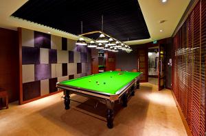 台球室设计美观,配有球桌、球杆、台球、记分显示等运动器材和设备,桌面之间和四周通道宽敞,自然采光良好,环境美观、舒适、大方、优雅。